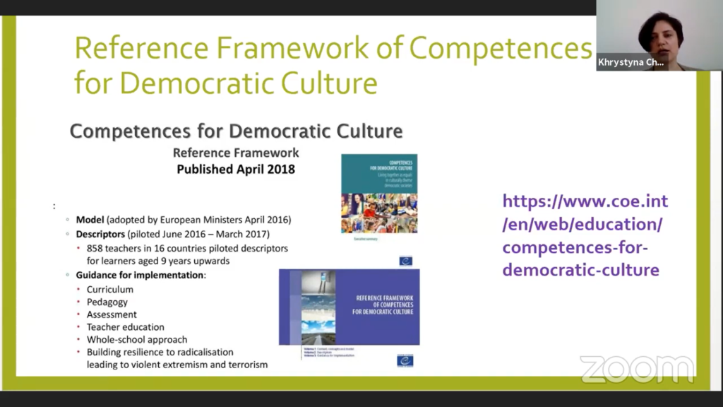 The Council of Europes’ Reference Framework for Democratic Culture (RFCDC) held a central role when EWC presented experiences from the Schools for Democracy project in Ukraine, and how they have dealt with the challenges presented by the covid-19 pandemic, at an international e-conference promoting European ideas in education in early June.