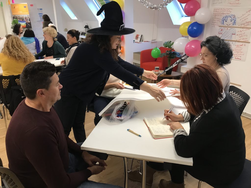 Five intensive days of training conducted by EWC experts Elizabeth Kasa-Malksoo and Andriy Donets started with an interactive session on the concept and principles of democratic and human right education, democratic competences and participation as a key principle for democratic school development. The participants later learned to apply the whole school approach and were guided in designing of projects to be implemented in Romania.