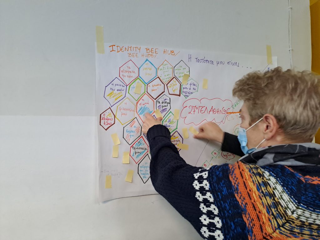 Each school will create their own hives where students will fill in the phrase ‘’Part of my identity is’’. The content will be translated in all necessary languages so that all participants understand what is expressed. The different hives will construct a colorful installation at the final event of the hub.