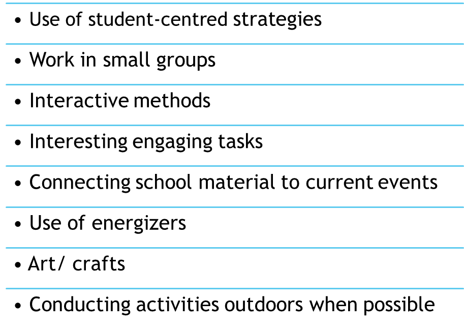 According to Khrystyna and Ukrainian teachers working with internally displaced children the following methods and approaches have proven useful:
