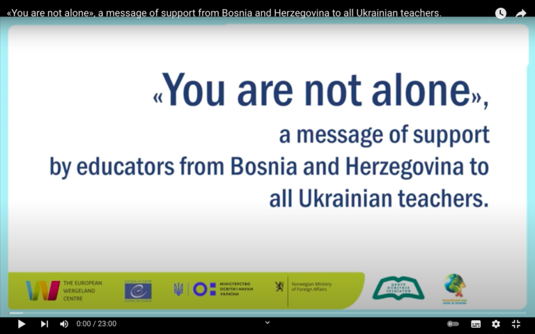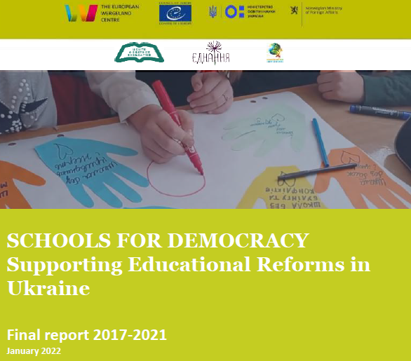 News Here you will find latest news related to our work in Ukraine A recess from the war When Russia invaded Ukraine, our Schools for Democracy team looked for ways to help. The trainers decided to organize meeting places integrating internally displaced children and their families with the local population.Read more You are not alone A message of support from educators in Bosnia and Herzegovina to all teachers in Ukraine.Read more Mobilizes for Wartime Education In the middle of the war, from Kyiv, Ukraine’s Minister of Education Serhiy Shkarlet presented a comprehensive plan to mobilize all possible resources to protect and restore education in Ukraine. EWC is ready to support schools and kindergartners in this time of need.Read more Α message of peace to the children of Ukraine In the framework of the European projects, eTwinning and Convoi77, implemented this year, the students of the 1st Gymnasium of Ampelokipi, prepared their own messages of love and support for their classmates in Ukraine. More…Read more Schools for Democracy Final Report 2017-2021 “Schools for Democracy: Supporting Education Reforms in Ukraine” Programme implemented by the European Wergeland Centre (EWC) aims to support democratic reforms in school education in Ukraine by promoting democratic culture and democratic citizenship in policy and practice.Read more Back to #WeStandWithUkraine